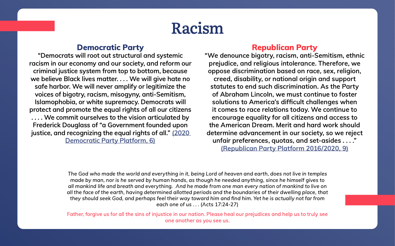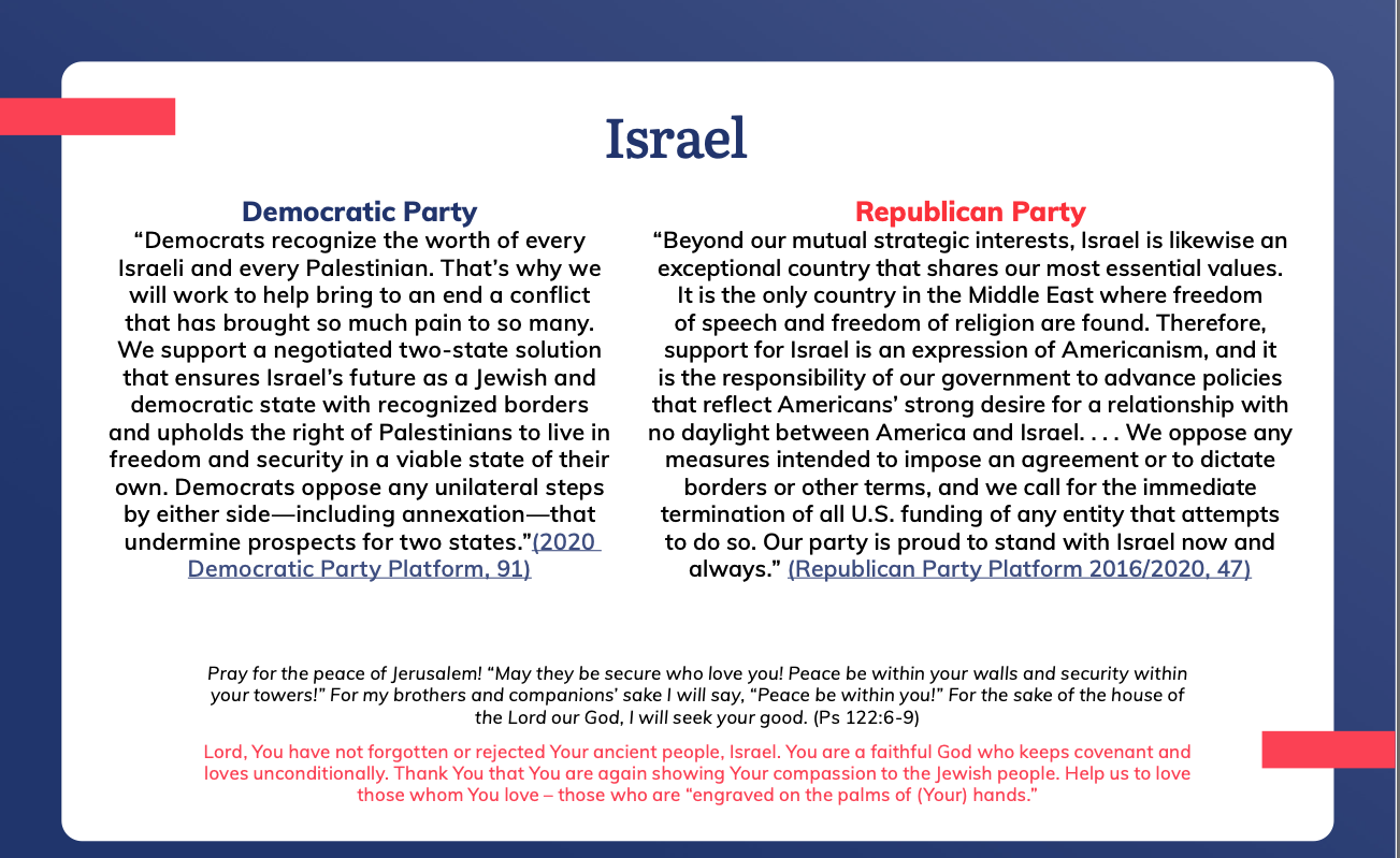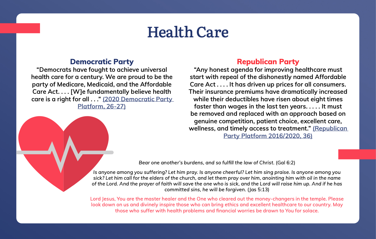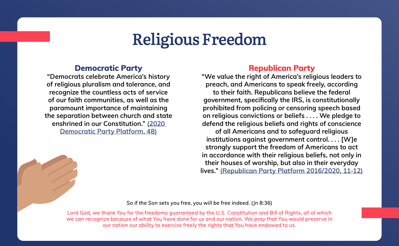 To better help you, I have attached a Voter Prayer Guide below. This guide gives us three things: it lays out the stances of the two major political parties, it gives Scripture to go along with each issue, and lastly, it gives a foundation on how to pray biblically for these issues.